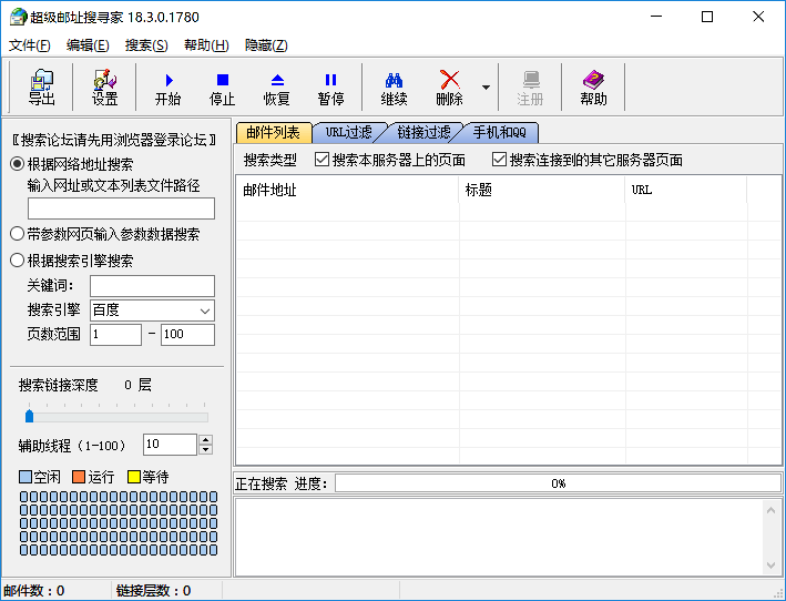 W建议搜索之前先用浏览器浏览要搜索的网站,找到最容易搜索的、链接得到地址较多的页面作为开始页面,确定好邮件地址大部分处于第几层,能用参数搜索的最好使用参数搜索。